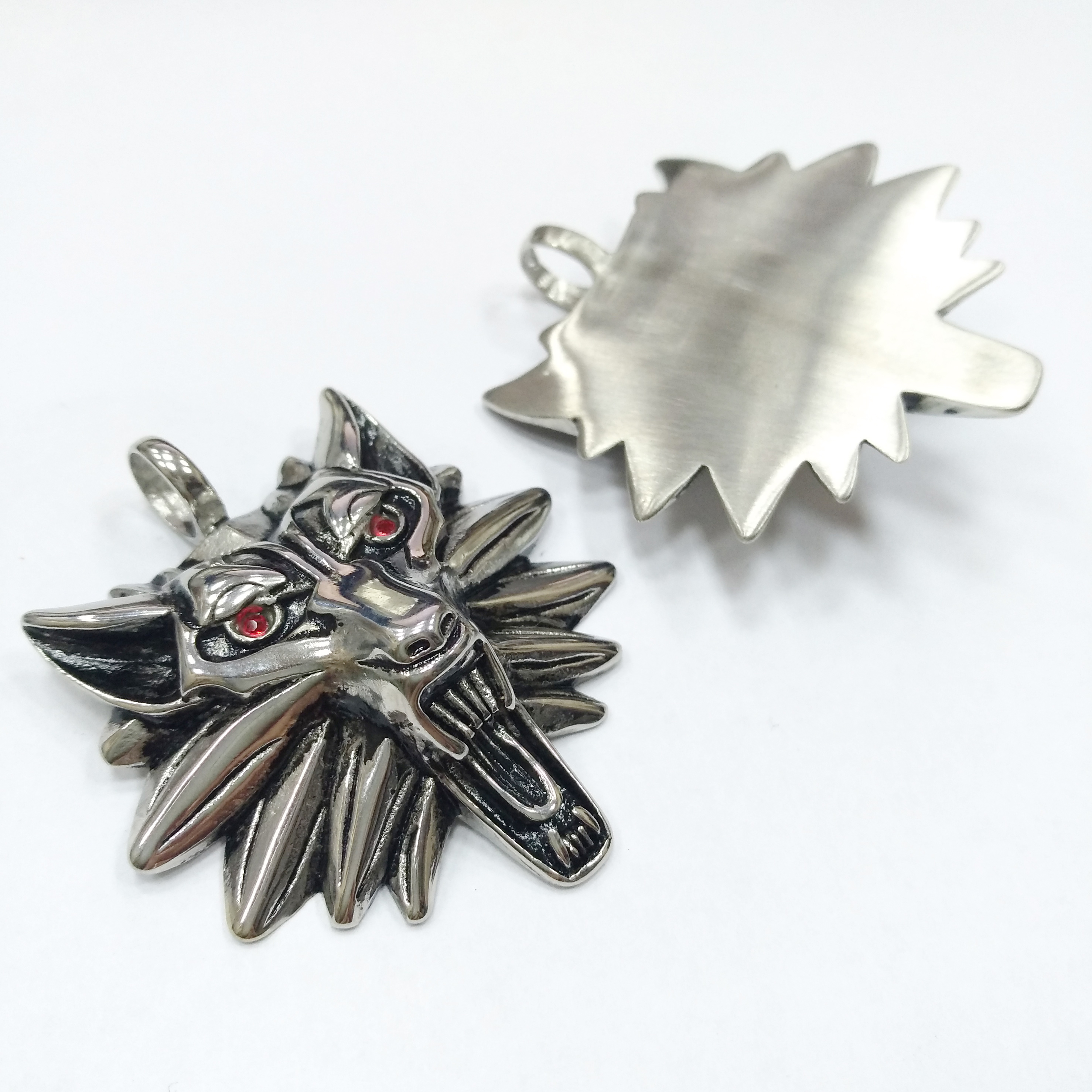 Очень эффектная крупная подвеска из нержавеющей стали - оскалившийся волк. В глаза вклеены стразы красного цвета. Подвеска напоминает ведьмачий медальон - амулет школы Волка. Нержавеющая сталь марки 316 не темнеет и не облезает, гипоаллергенная (используется в пищевой и медицинской промышленности). Оттенок может отличаться от фотографии и в разных поставках. Цена за 1 шт.