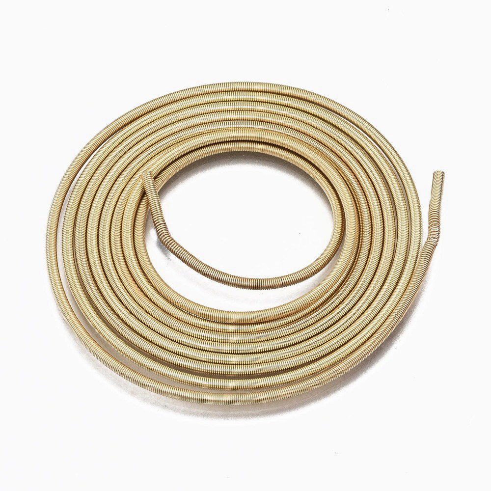 Гладкая проволока-пружинка типа бульонка с покрытием под приглушённое золото. Цвет приглушённое золото, оттенок может отличаться от фотографии и в разных поставках. Базовый материал - сталь. Жесткость, заявленная производителем: жёсткая. Пожалуйста, обратите внимание, что жесткость указана производителем и может отличатся от шкалы жесткости у других производителей. Толщина, заявленная производителем - 2 мм, может немного отличаться в разных поставках. Длина около 95-99 см (канитель уже нарезана производителем). На проволоке могут периодически встречаться заломы/растянутые участки. Также такую проволоку называют канитель или французская проволока. Канитель может использоваться как для вышивки (золотое/золотное шитье), так и для защиты нитей при сборке бус, колье, браслетов. Цена за 1 кусочек (95 см).