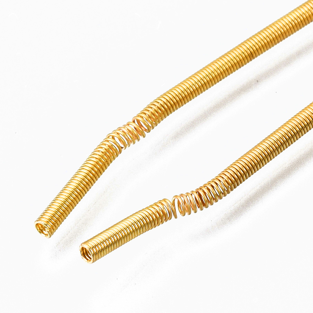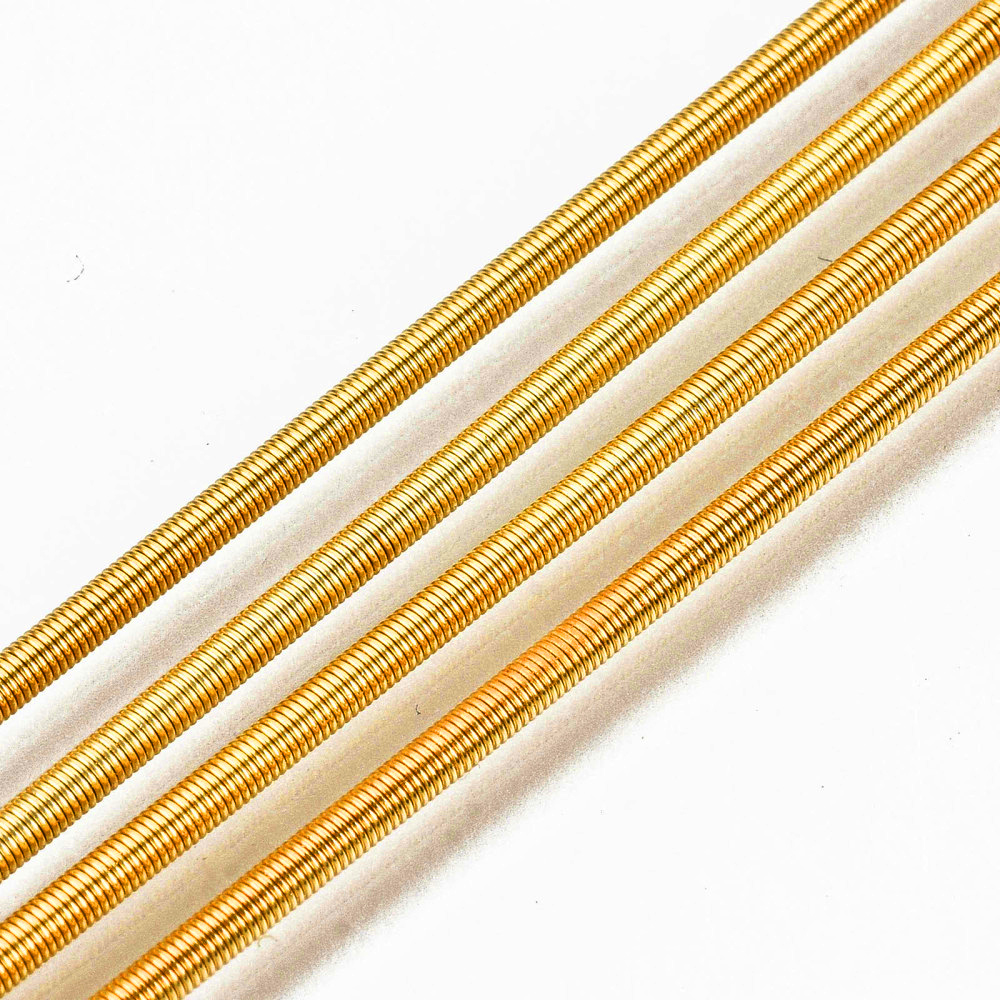 Гладкая проволока-пружинка типа бульонка с покрытием под приглушённое золото. Цвет яркое золото, оттенок может отличаться от фотографии и в разных поставках. Базовый материал - сталь. Жесткость, заявленная производителем: жёсткая. Пожалуйста, обратите внимание, что жесткость указана производителем и может отличатся от шкалы жесткости у других производителей. Толщина, заявленная производителем - 2 мм, может немного отличаться в разных поставках. Длина около 95-99 см (канитель уже нарезана производителем). На проволоке могут периодически встречаться заломы/растянутые участки, тёмные пятнышки. Также такую проволоку называют канитель или французская проволока. Канитель может использоваться как для вышивки (золотое/золотное шитье), так и для защиты нитей при сборке бус, колье, браслетов. Цена за 1 кусочек (95 см).