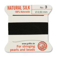 Прочная шелковая нить для низания бус и браслетов. Изготовлена из высококачественного натурального 100% шелка, произведена немецкой компанией Griffin. К нити прикреплена стальная скрученная проволочка-иголка для нанизывания бусин. Идеально подходит для использования с жемчугом и натуральными камнями. Цвет чёрный (black). Оттенок нити может немного отличаться от фотографии. Дизайн упаковки может отличаться от фотографии. Толщина около 0,5 мм (размер No.3). Цена за моток 2 метра.