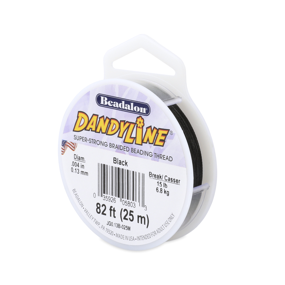 Качественная синтетическая нить Dandyline от американской компании Beadalon (Бидалон). Эта кручёная нить сделана из уникальных синтетических волокон: очень прочная, мягкая, гибкая, практически не растягивается даже при намокании. Отлично подходит для вышивки бисером и бисероплетения. Рекомендуется использовать эту нитку с жёсткими бисерными иглами. Цвет черный. Оттенок может отличаться от фотографии. Намотка может состоять из нескольких частей. На катушке имеется удобная пластиковая насадка - фиксатор, не дающая нити самопроизвольно разматываться. Товар произведен в США. Цена за катушку 82 фута (около 25 метров).