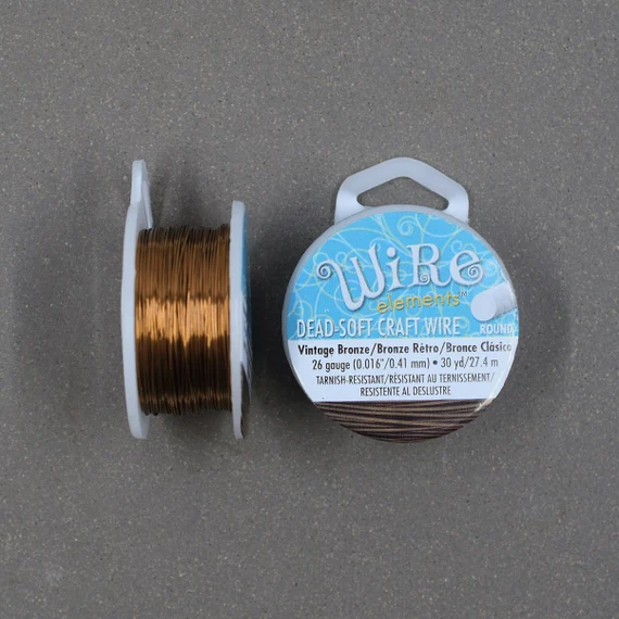 Качественная не темнеющая бронзовая проволока для создания украшений и других видов рукоделия. Марка Wire elements (ребрендинг марки Craft Wire pro-quality), цвет - устойчивая к потемнению винтажная бронза (VINTAGE BRONZE tarnish-resistant). Оттенок может отличаться от фотографии. Базовый материал - медь. Толщина 26 gauge (около 0,405 мм). Удобная катушка с накладкой-фиксатором, предотвращающей самопроизвольное разматывание проволоки. Произведена в Пакистане для американской компании Bead Smith. Намотка может состоять из нескольких частей. Цена за катушку 30 ярдов (около 27.4 метров).