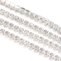 Цепочка со стразами (стразовая цепь) шириной около 4 мм, цвет металла - под родий, цвет страз - кристально прозрачный. Некоторые стразы могут быть вставлены не очень аккуратно или отсутствовать. Оттенок может отличаться от фотографии. Цена за 1 метр. Продается на отрез, нужным Вам куском. Максимальная длина цельного куска - 8-9 метров.