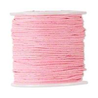 Вощеный шнур, 100% хлопок, цвет розовый. Шнур довольно рыхлый, может казаться толще заявленной производителем толщины. Толщина 0.5-1 мм. По возможности, продается цельным куском, однако, может поставляться несколькими отрезами. Цена за 10 метров.