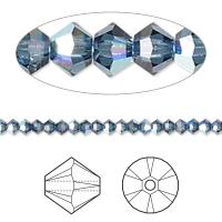 Кристалл Сваровски, джинсово-синий (montana AB) с радужным покрытием (Crystal Aurore Boreale), биконус (Xilion bicone (5328)). Цена за 10 шт.