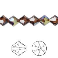 Кристалл Swarovski, цвет коричневый с эффектом АВ (smoked topaz AB), биконус (Xilion bicone (5328)). Цена за 1 шт.