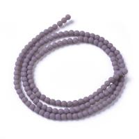 Круглые бусины из стекла - миниатюрные гладкие шарики, поверхность матовая (тёртая), цвет непрозрачный лиловый. Бусины могут немного отличаться по размеру и форме. Оттенок может немного отличаться от фотографии и в разных поставках. Цена за низку длиной примерно 38 см (около 145 бусин, низки формируются без проверки каждой бусины на дефекты).