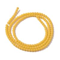 Круглые бусины из стекла - миниатюрные гладкие шарики, поверхность матовая (тёртая), цвет непрозрачный темно-желтый. Бусины могут немного отличаться по размеру и форме. Оттенок может немного отличаться от фотографии и в разных поставках. Цена за низку длиной примерно 38 см (около 145 бусин, низки формируются без проверки каждой бусины на дефекты).