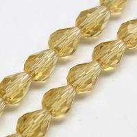 Стеклянная граненая бусина - капелька, размер 8*12 мм. Цвет тёмно-жёлтый, оттенок может отличаться от фотографии и в разных поставках. Низки формируются без проверки каждой бусины на дефекты. Цена за низку, около 55 бусин.
