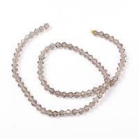 Бюджетные стеклянные граненые бусины - биконусы светлого серо-бежевого цвета. Напоминают по цвету дымчатый кварц (раухтопаз). Бусины могут немного отличаться по форме и размеру, оттенок может немного отличаться от фотографии и в разных поставках. Цена за низку около 78 бусин, низки формируются без проверки каждой бусины на дефекты.