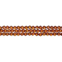 Бюджетные стеклянные граненые бусины - биконусы темно-янтарного цвета с легким перламутровым отливом (Pearl Luster Plated). Бусины могут немного отличаться по форме и размеру. Оттенок может немного отличаться от фото. Цена за низку около 78 бусин.