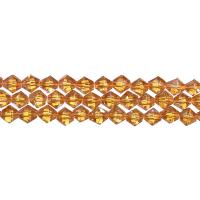 Бюджетные стеклянные граненые бусины - биконусы янтарного цвета с AB покрытием. Бусины могут немного отличаться по форме и размеру. Оттенок может немного отличаться от фото. Цена за низку около 50 бусин.