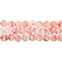 Низка стеклянных бусин ручной работы, выполненных в технике миллефиори. Прозрачные бусины с красными цветочками. Цена за низку.
