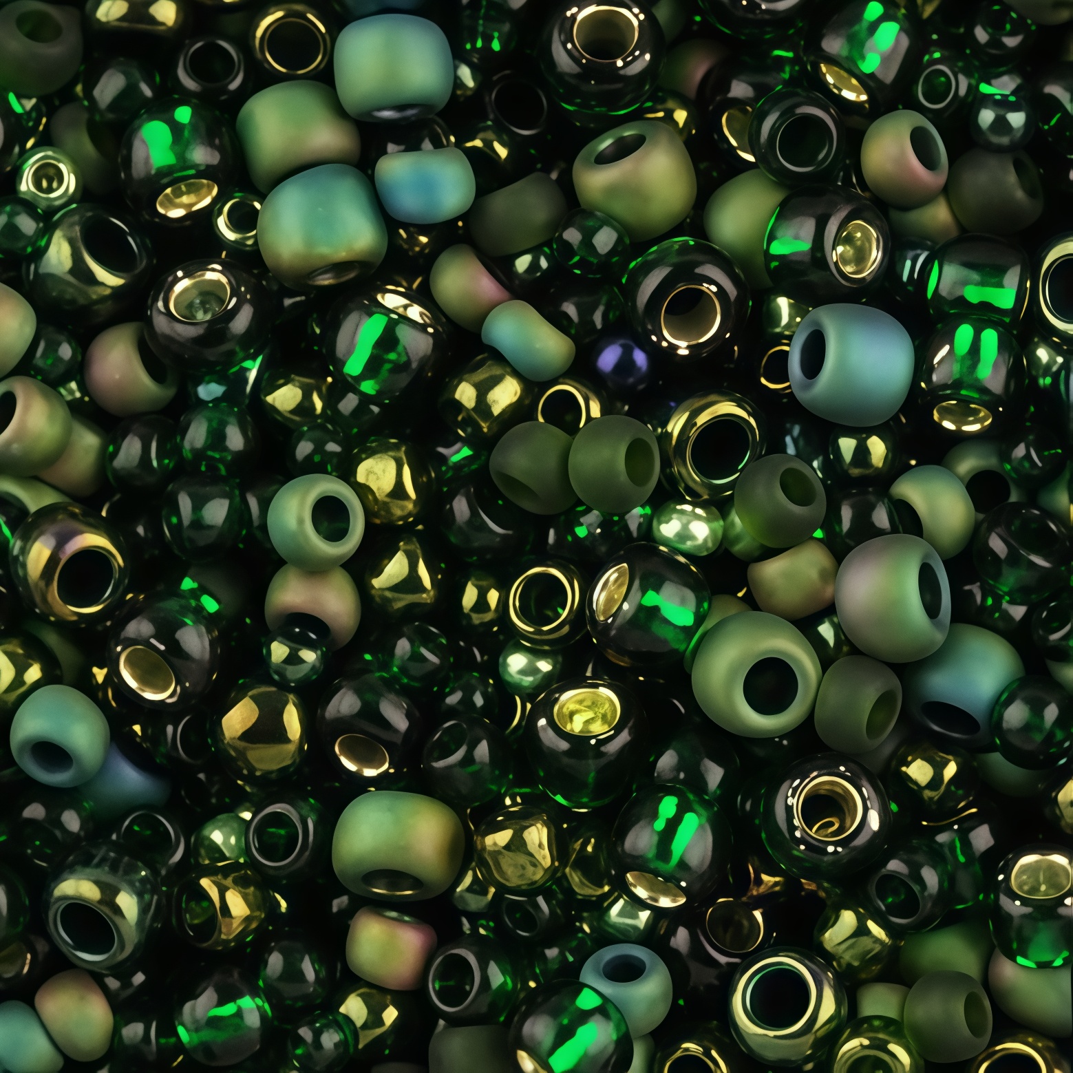 Японский бисер TOHO Mix - микс бисера и стекляруса разных форм, цветов и размеров. Цвет темно-зеленый (Bonsai - Green/Black). Оттенок и состав набора может отличаться от фотографии. Цена за 10 грамм.