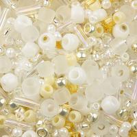 Японский бисер TOHO Mix - микс бисера и стекляруса разных форм, цветов и размеров. Цвет бело-золотой (Hasu- White Mix). Оттенок и состав набора может отличаться от фотографии. Цена за 10 грамм.