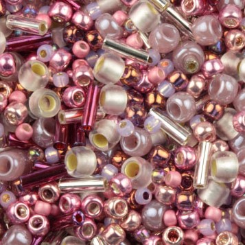 Японский бисер TOHO Mix - ассорти бисера и стекляруса разных форм, оттенков и размеров в одной цветовой гамме. Цвет пыльно-розовый (Hime- Pink Mix). Оттенок и состав набора может отличаться от фотографии. Миксы бисера - отличный вариант для сборки украшений и вышивки. Цена за 10 грамм.