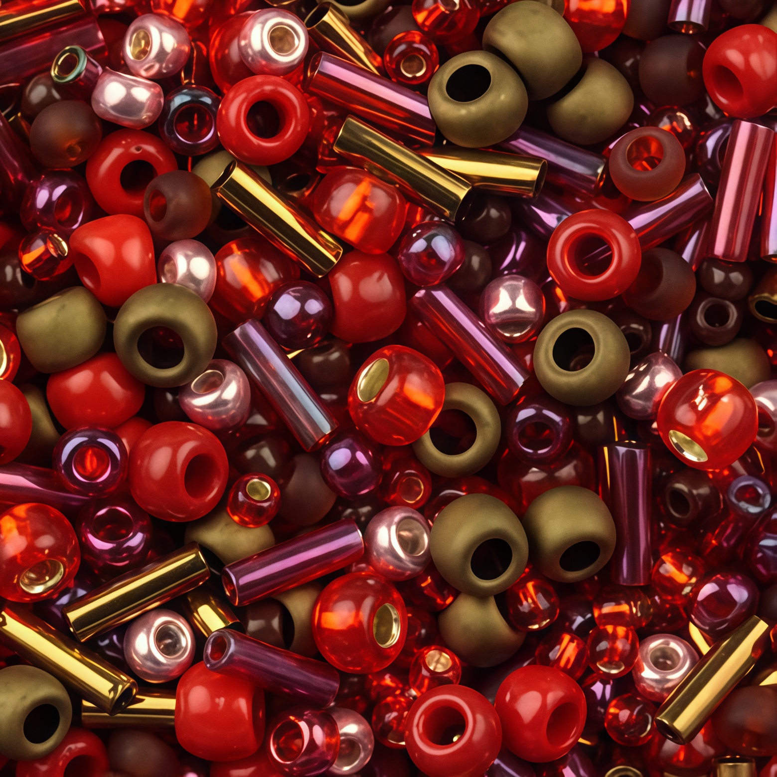Японский бисер TOHO Mix - микс бисера и стекляруса разных форм, цветов и размеров. Цвет красно-бронзовый (Samurai- Red/Brown Mix). Оттенок и состав набора может отличаться от фотографии. Цена за 10 грамм.