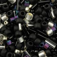 Японский бисер TOHO Mix - микс бисера и стекляруса разных форм, цветов и размеров. Цвет черно-серебристый (Yozora- Jet/Silver Mix). Оттенок и состав набора может отличаться от фотографии. Цена за 10 грамм.